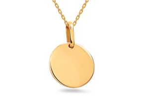 Kerek tányér formájú arany medál, 9K , modell IZ15166MHR Az ékszerek minimalista, finom stílusban készültek. Ez az ékszer 9 karátos aranyból készült.